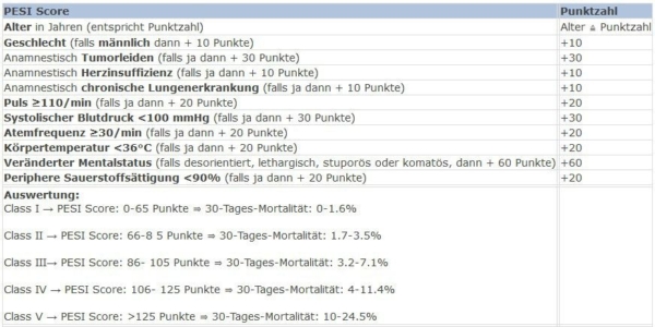 The Pulmonary Embolism Severity Index (PESI) scoring tool – modified ...
