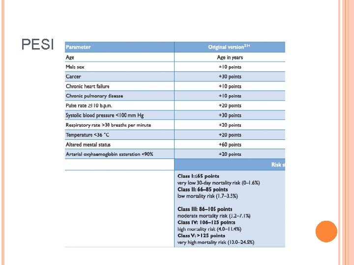 The Pulmonary Embolism Severity Index (PESI) scoring tool – modified ...