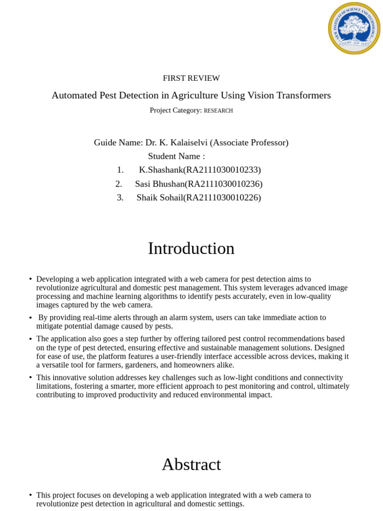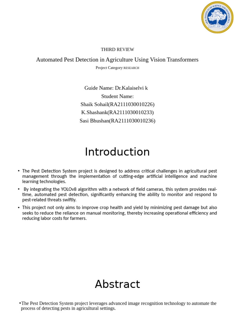 Third Review Automated Pest Detection Using Vision Transformers | PDF ...