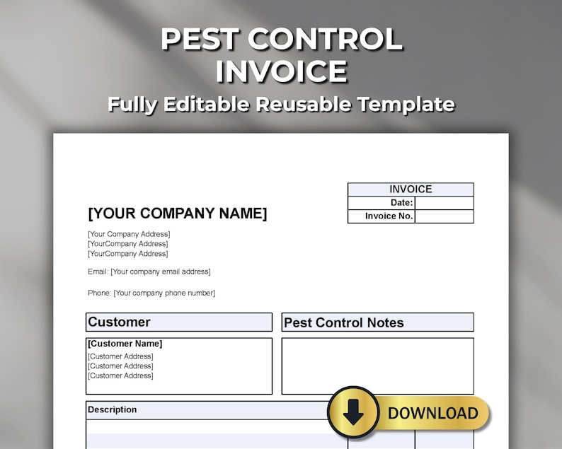 Pest Control Invoice Template: Fillable PDF, Word, Excel (digital ...