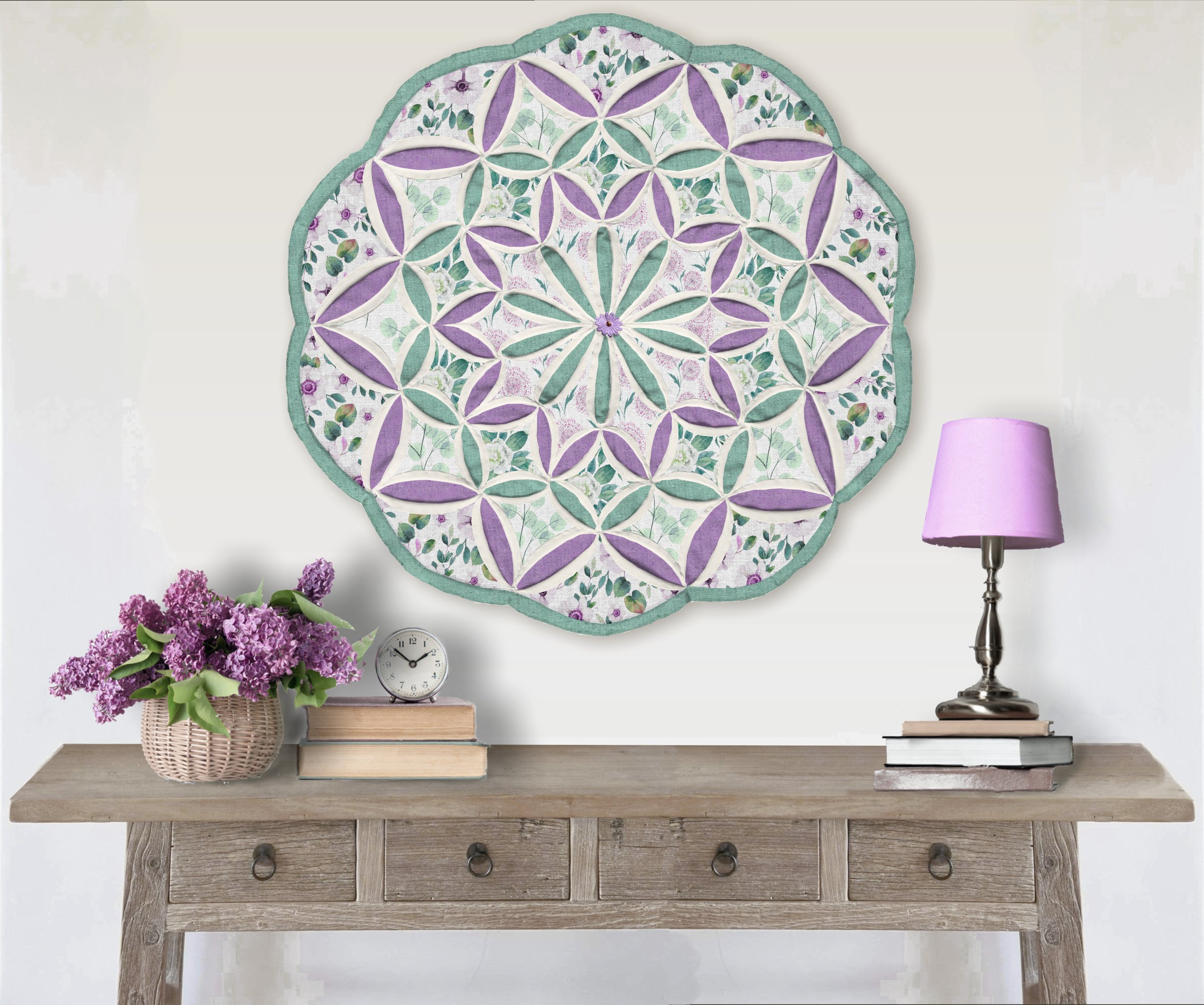 "Lilac Dahlia" cathedral window wall hanging/topper. PDF tutorial and ...