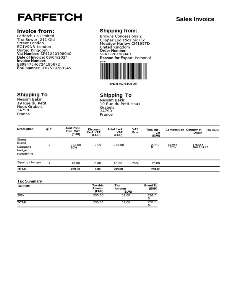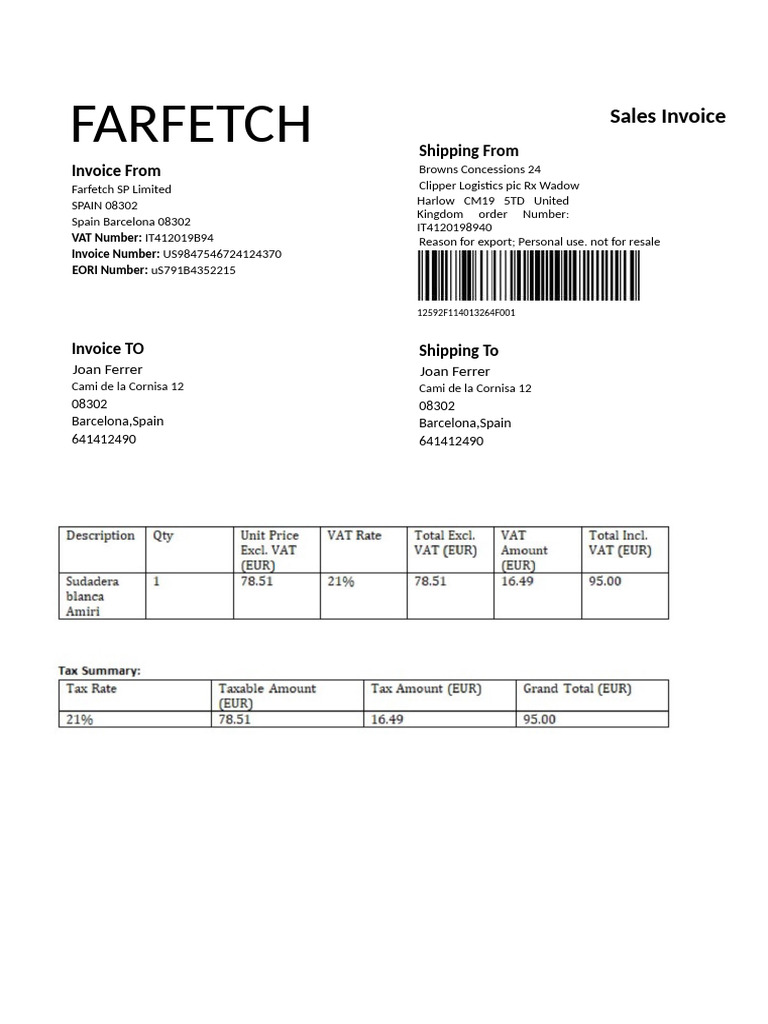 Farfetch: Sales Invoice | PDF | Value Added Tax | Taxes