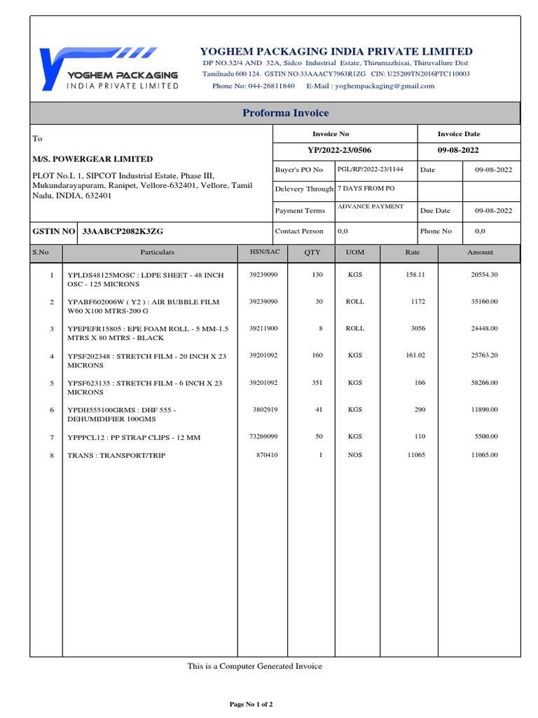 Yoghem Packaging Invoice YP/2022-23/0506 | PDF | Financial Services | Taxes