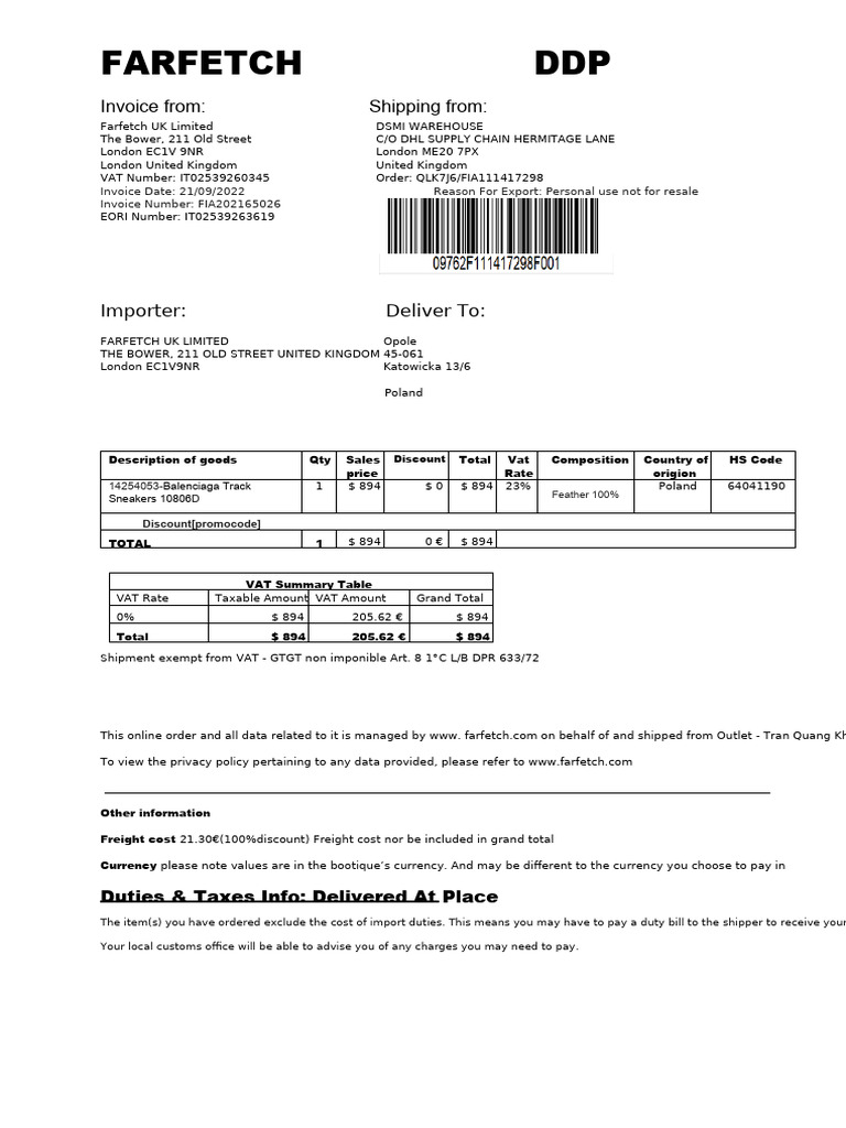 Facture Farfetch Balenciaga Track | PDF | Value Added Tax | Trade