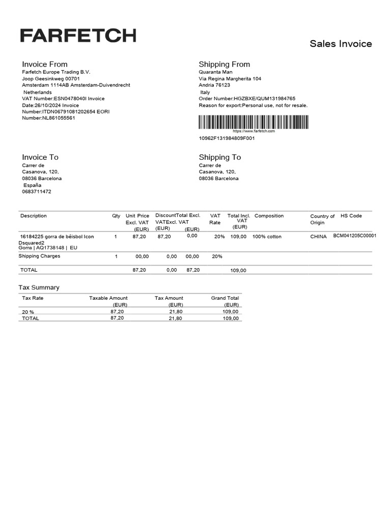 Farfetch Invoice - PDF - Value Added Tax - Invoice PDF | PDF | Value ...