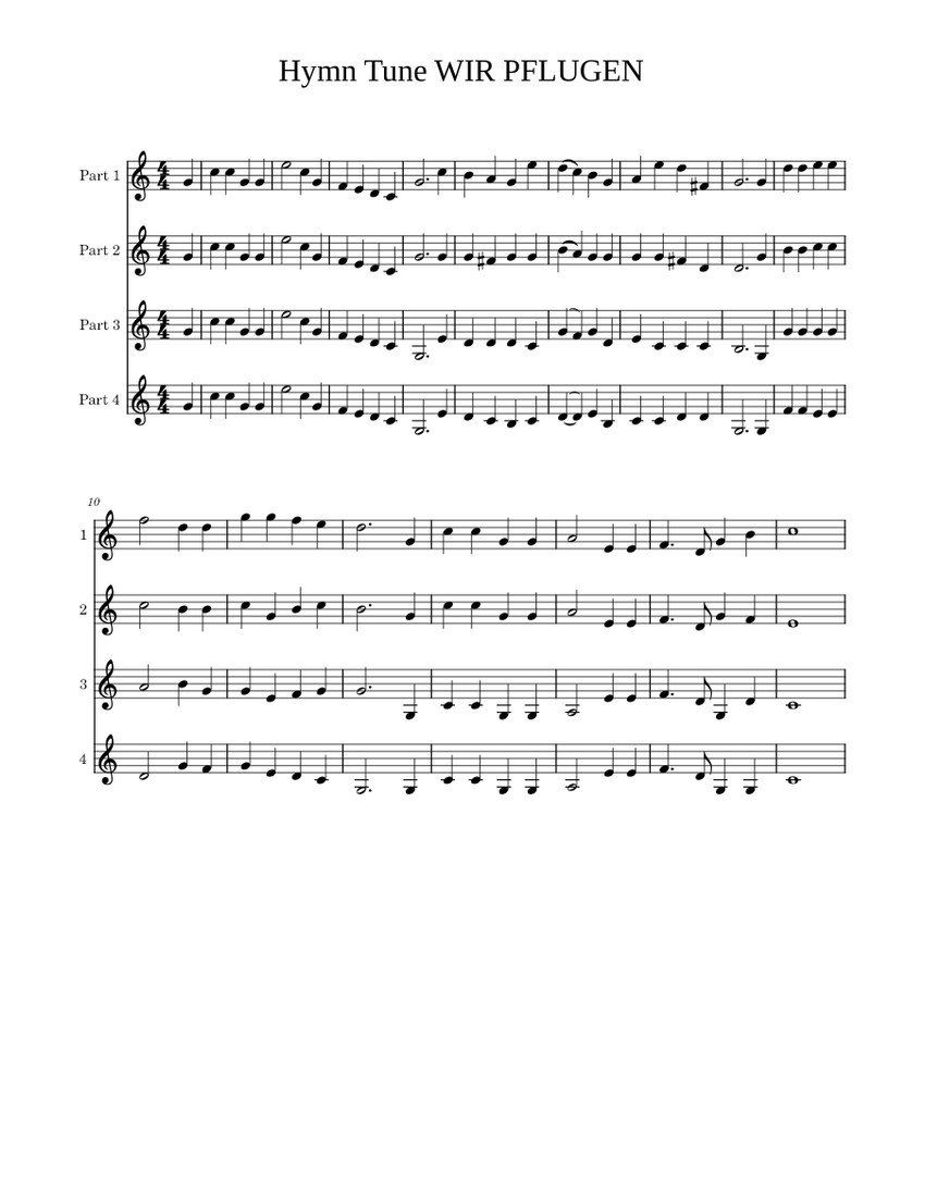 Hymn Tune WIR PFLUGEN Sheet Music for Baritone horn (Mixed Quartet ...