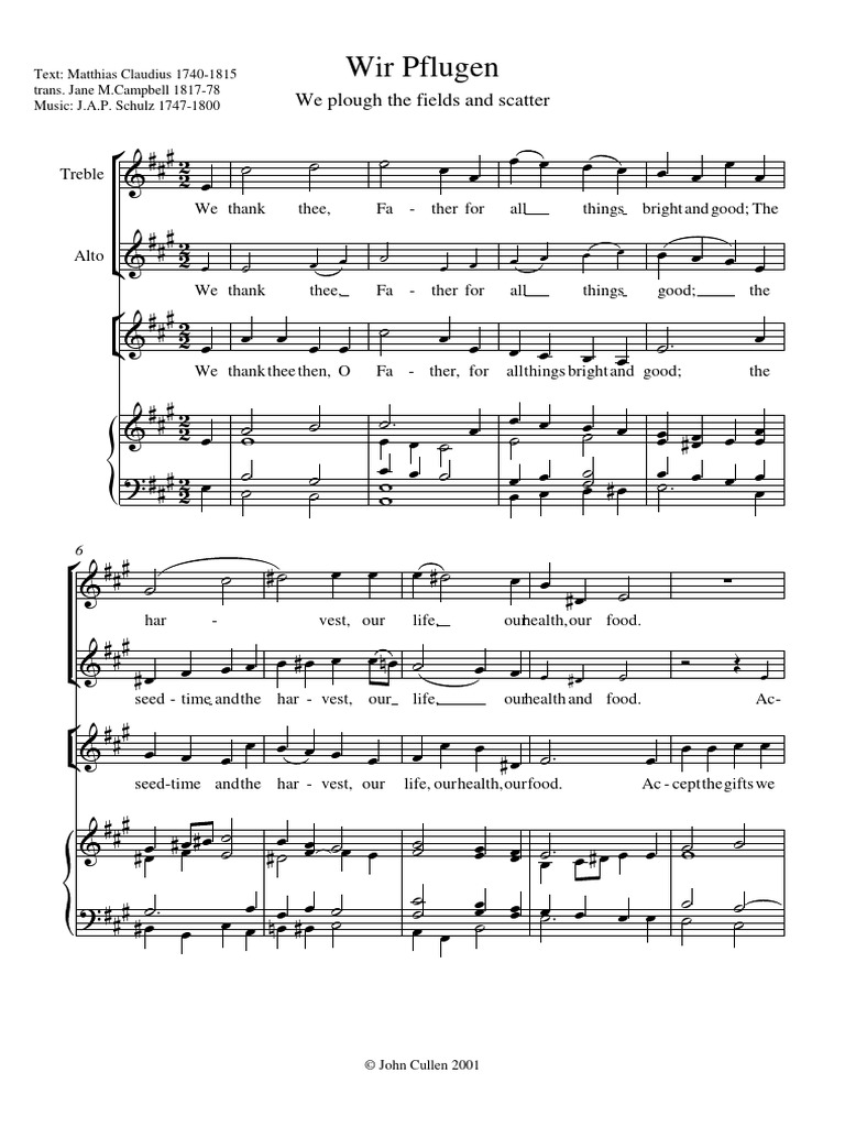 Wir pflugen und wir streuen by Friedemann Gottschick - SSA - Sheet ...