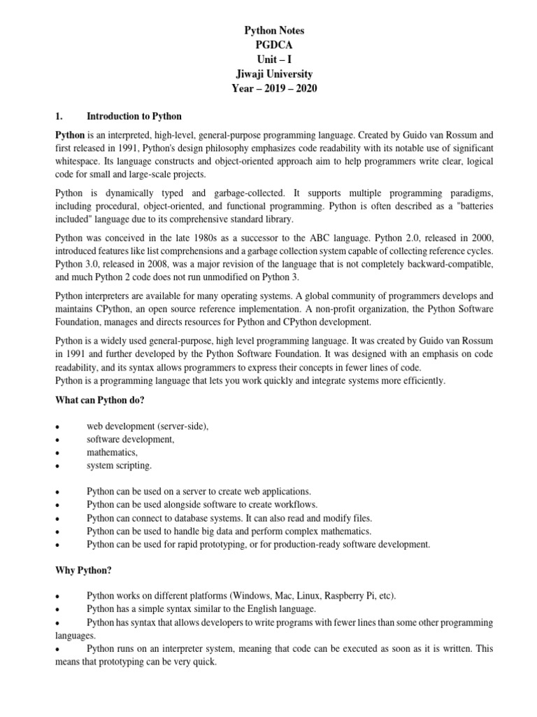 PGDCA Python Notes UNIT - 1 | PDF | Python (Programming Language ...