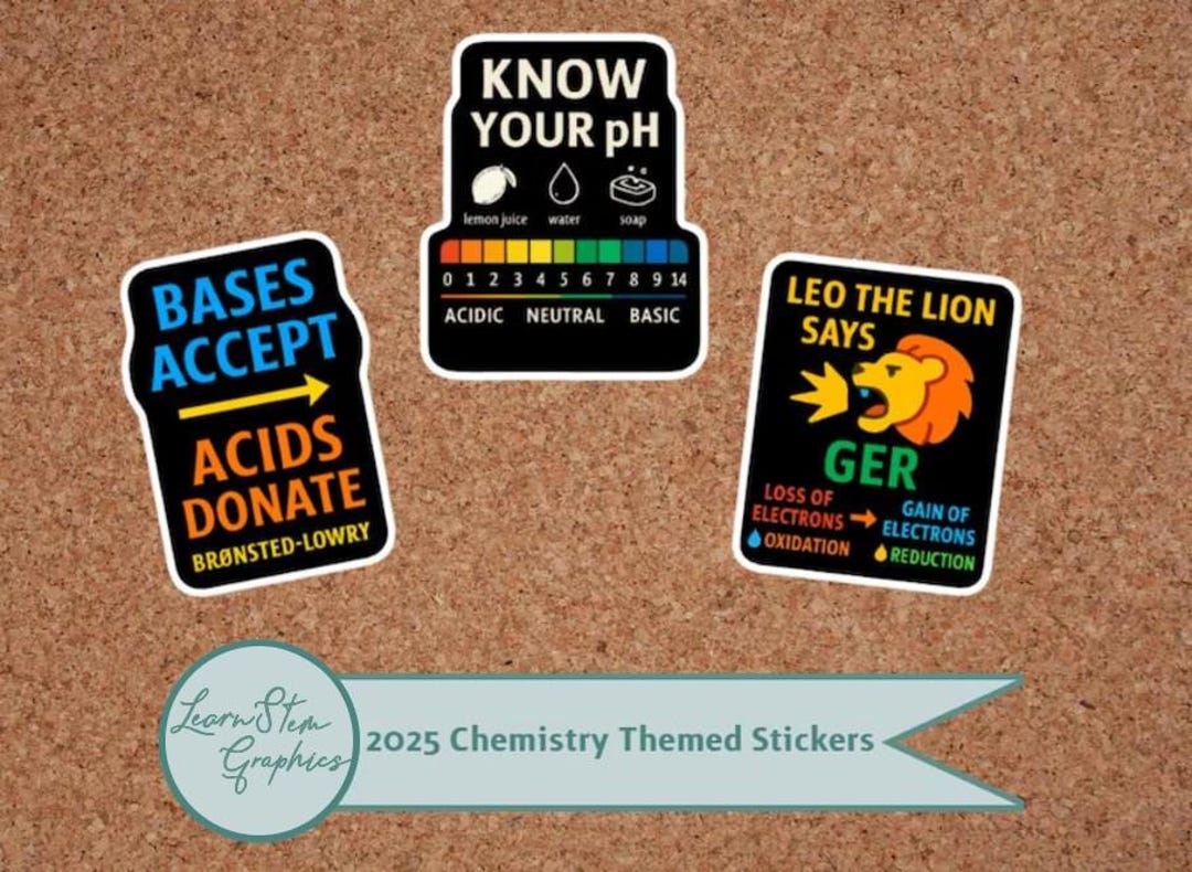 Chemistry Education Sticker Set – Ph Scale, Acid-base Theory, Oxidation ...