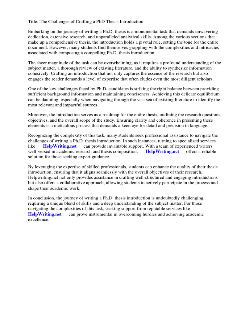 Writing A PHD Thesis Introduction | PDF