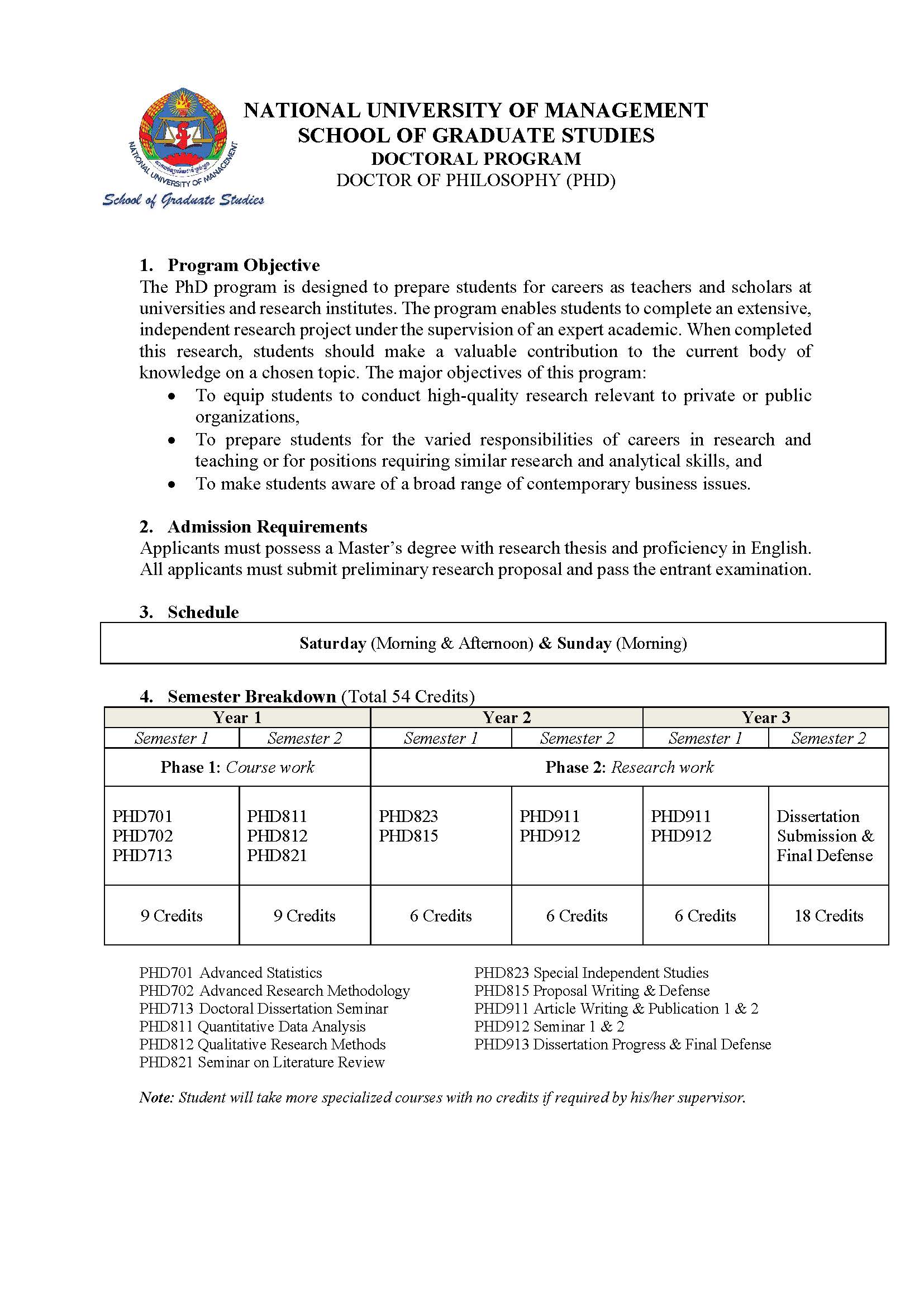 Introduction of PhD Program