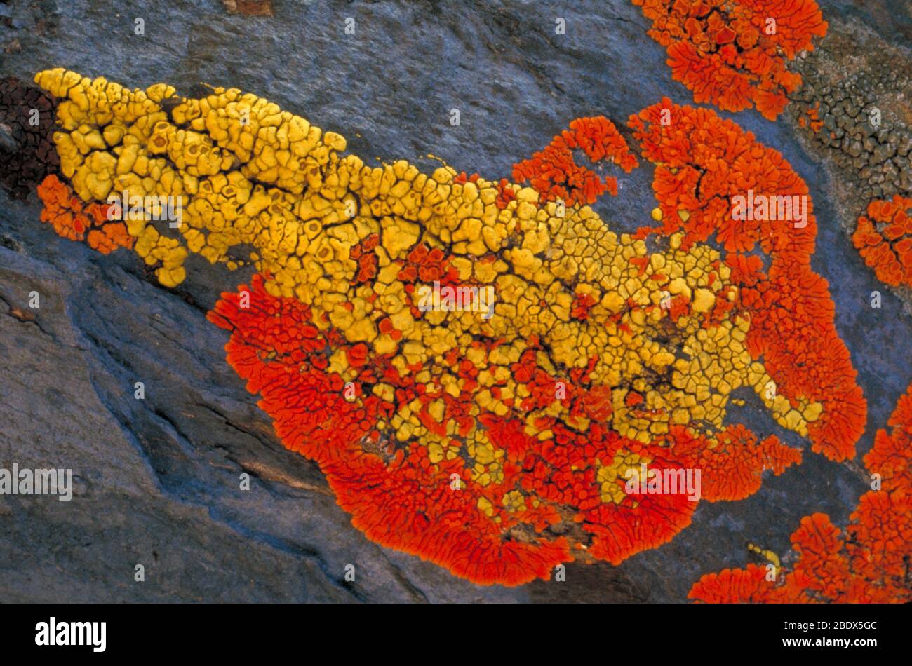 Lichen, Xanthoria aureola, growing on rock Stock Photo - Alamy