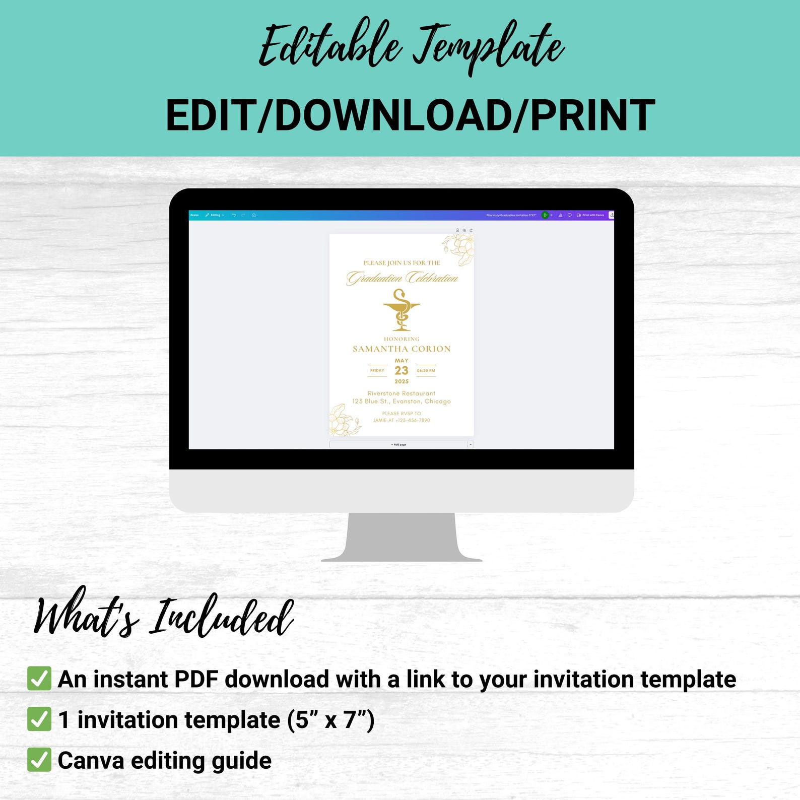 Graduation Invitation for Pharmacist, Editable Pharmacy Graduation ...