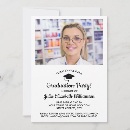 Elegant photo pharmacy graduation party invitation | Zazzle