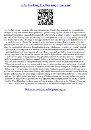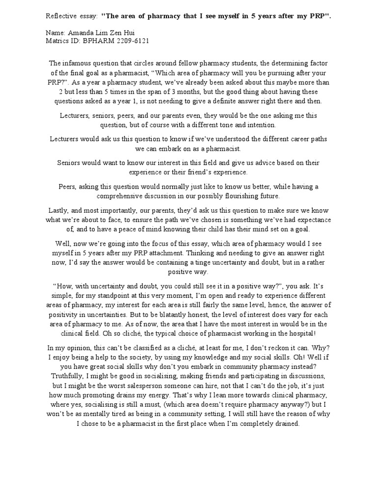 Reflective Essay | PDF | Pharmacy | Pharmacist