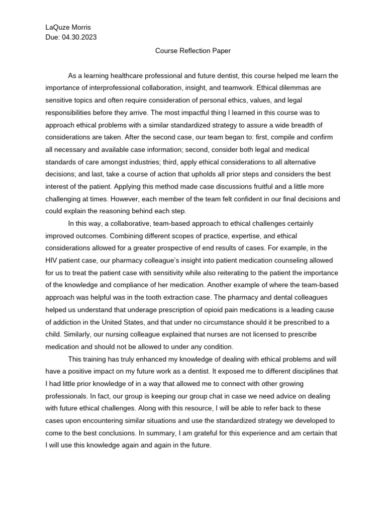 Course Reflection Paper | PDF | Medical Prescription | Pharmacy