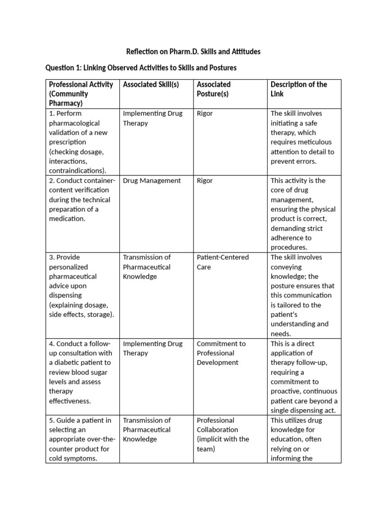 Reflection On Pharm.D. Skills and Attitudes - Edited | PDF | Pharmacy ...