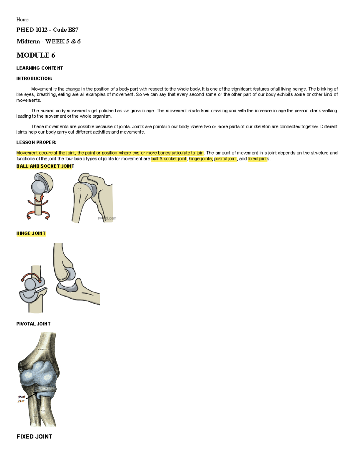 PHED MID 3 - ASDS FDFAD - Home PHED 1012 - Code B Midterm - WEEK 5 & 6 ...
