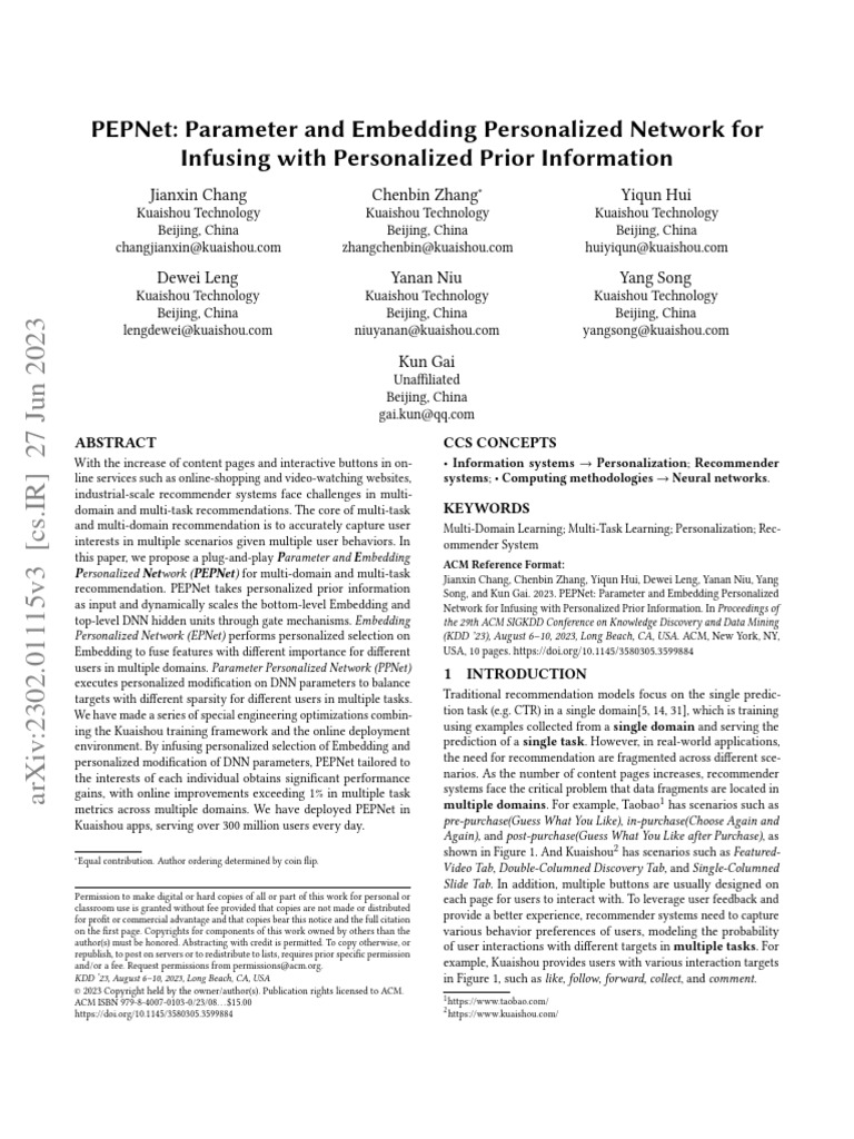 PEPNet - Parameter and Embedding Personalized Network For Infusing With ...