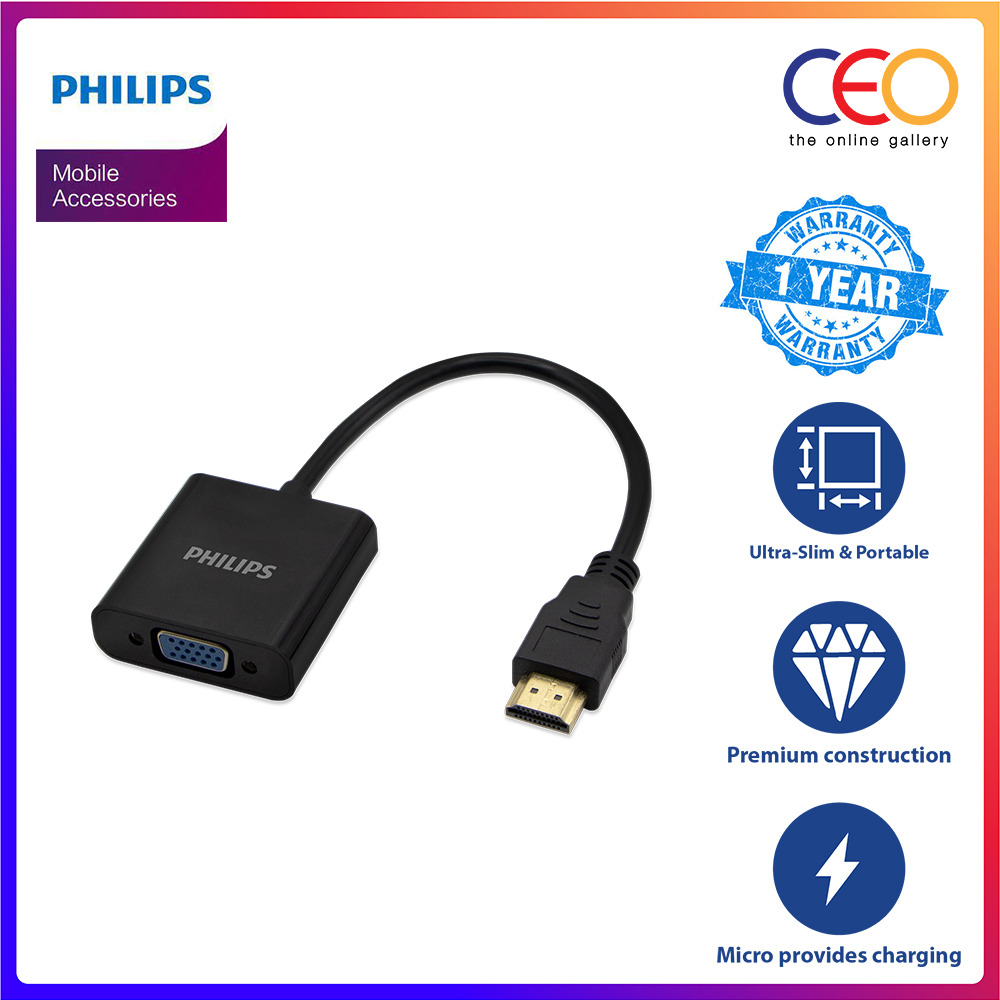 PHILIPS HDMI to VGA Adapter, Male to Female VGA Cable Required BLACK ...