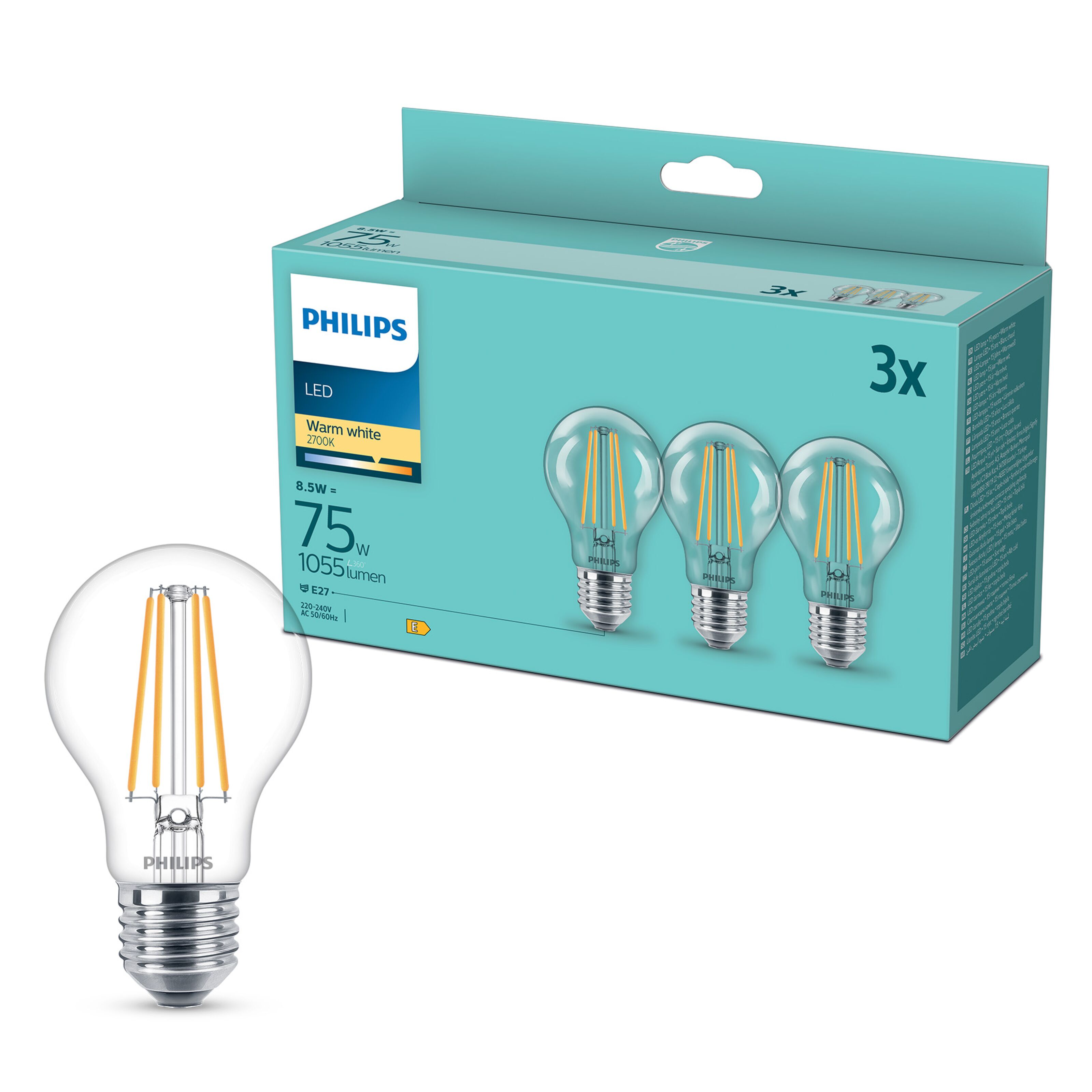 Philips LED-lampa E27 1055 lm 3-pack - LED-lampor | Kjell.com