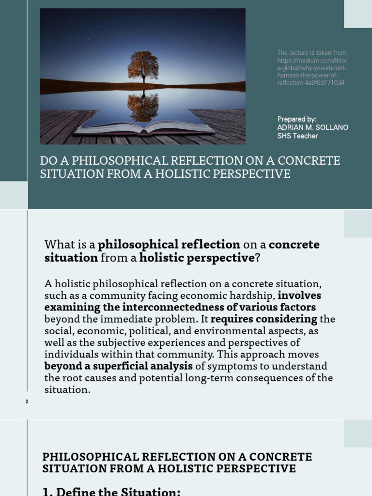 1.4 Do a Philosophical Reflection on a Concrete Situation From a ...