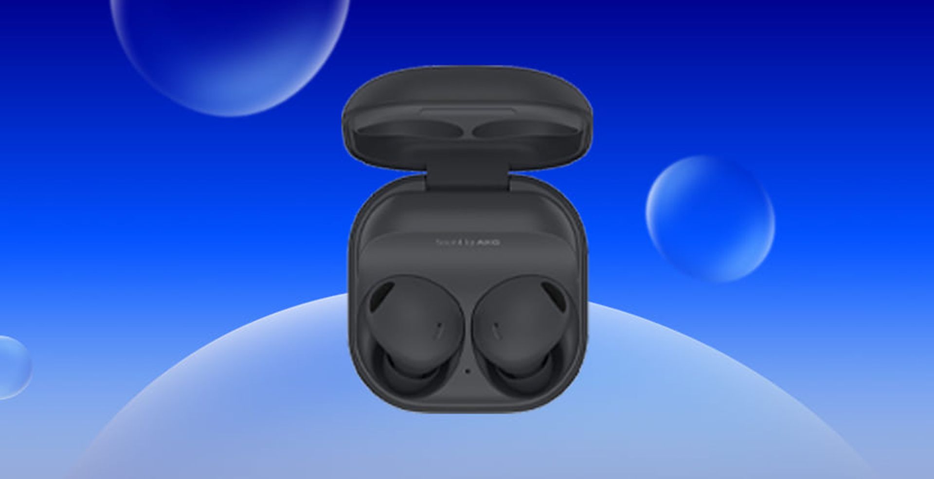 A Belkin wall charger, a Gear4 phone case, a pair of Galaxy Buds2 with ...