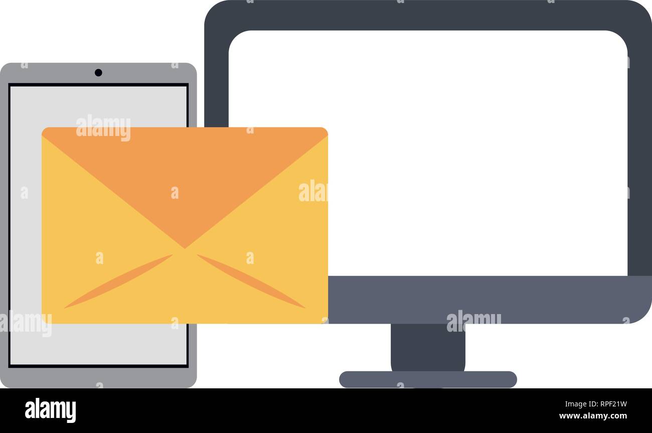 Email icon with a phone and a computer 54995014 Vector Art at Vecteezy