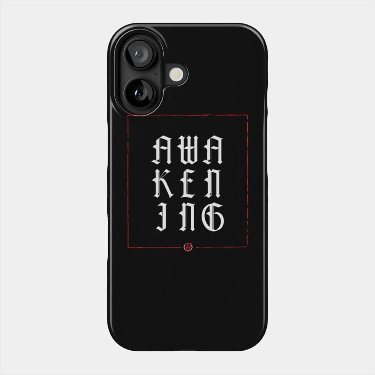 "Cursive Font - White Awakening Logo with Red Frame" Case for Apple ...