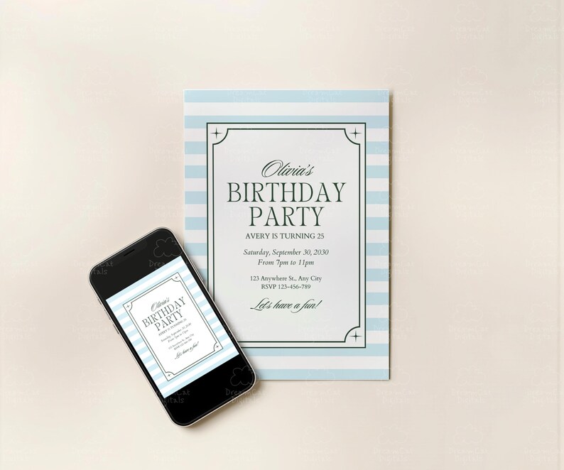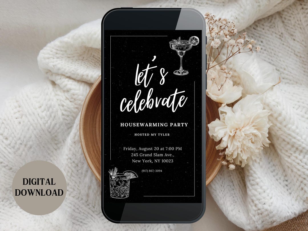Digital Minimal Modern Party Invitation Template, Custom Mobile Invite ...