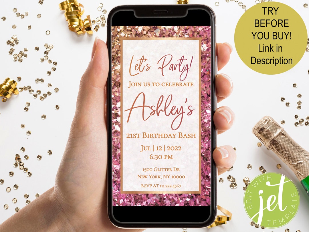 Phone Birthday Invitation Glitter E-invite Digital Mobile Invitation ...