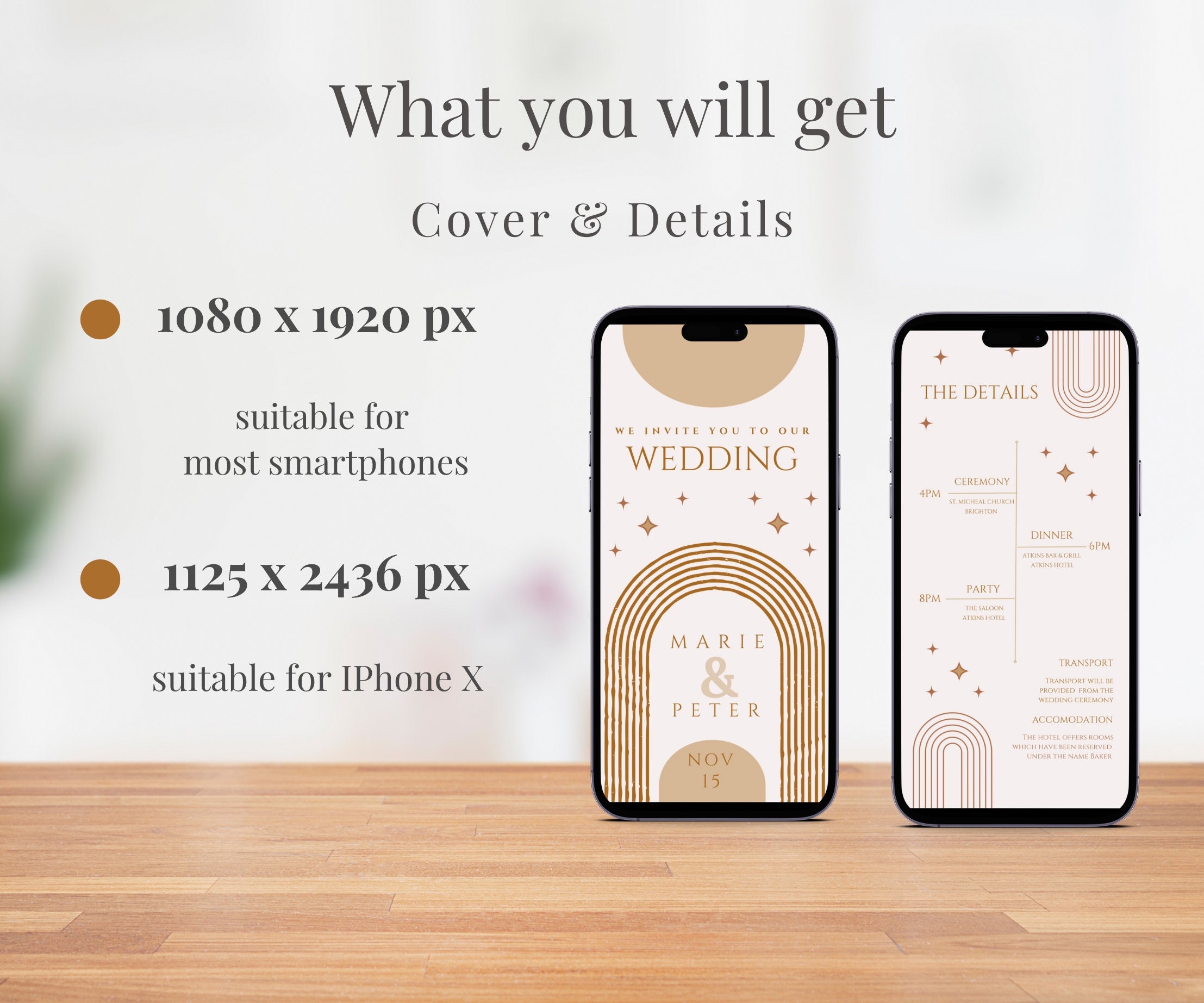Digital Wedding Invitation Boho Phone Invitation Template Instant ...