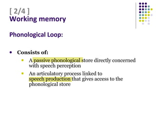 Working memory - Cognitive Psychology - Working memory The Phonological ...