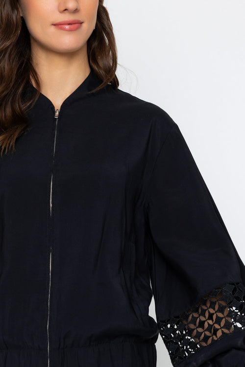 Black Bomber Jacket with Lace Insert | Ladies Jackets – Carraig Donn