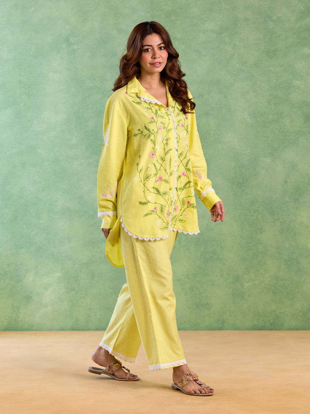 White Embroidered Handloom Linen Co-ord Set - Set of 2