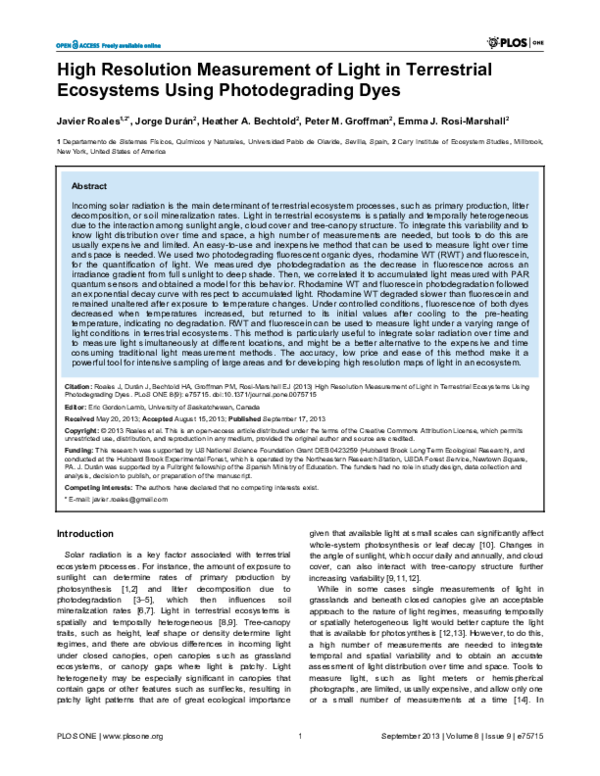 (PDF) High Resolution Measurement of Light in Terrestrial Ecosystems ...