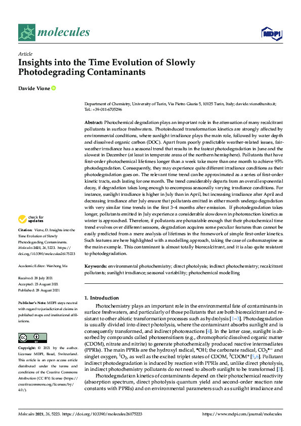 Insights into the Time Evolution of Slowly Photodegrading Contaminants ...