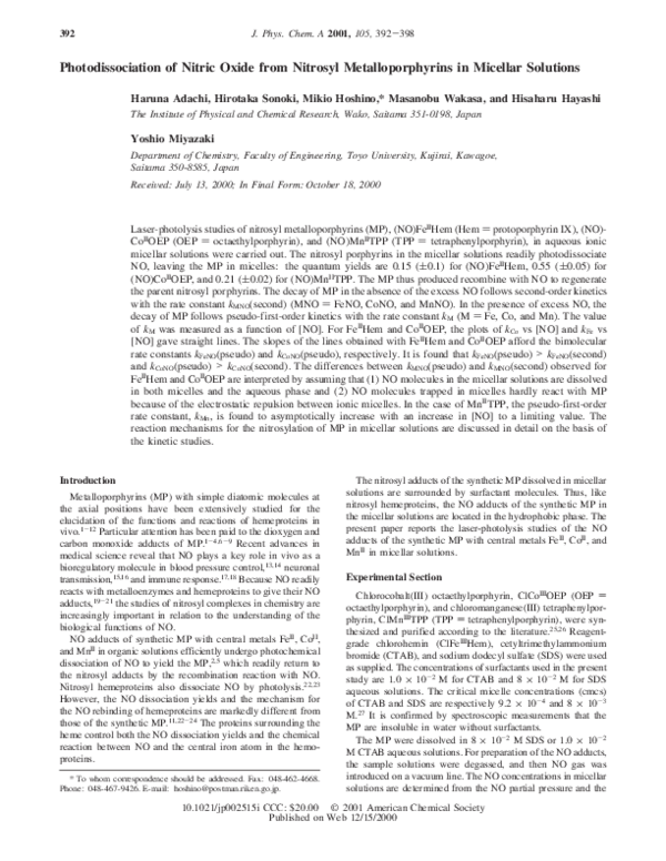 (PDF) Photodissociation of Nitric Oxide from Nitrosyl Metalloporphyrins ...