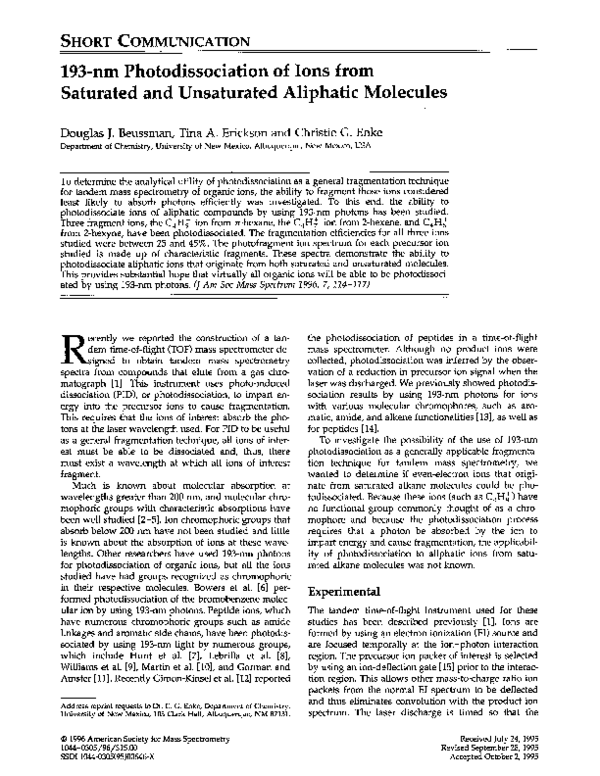 (PDF) 193-nm Photodissociation of ions from saturated and unsaturated ...