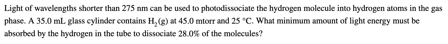 light of wavelengths shorter than 275 nm can be used to photodissociate ...