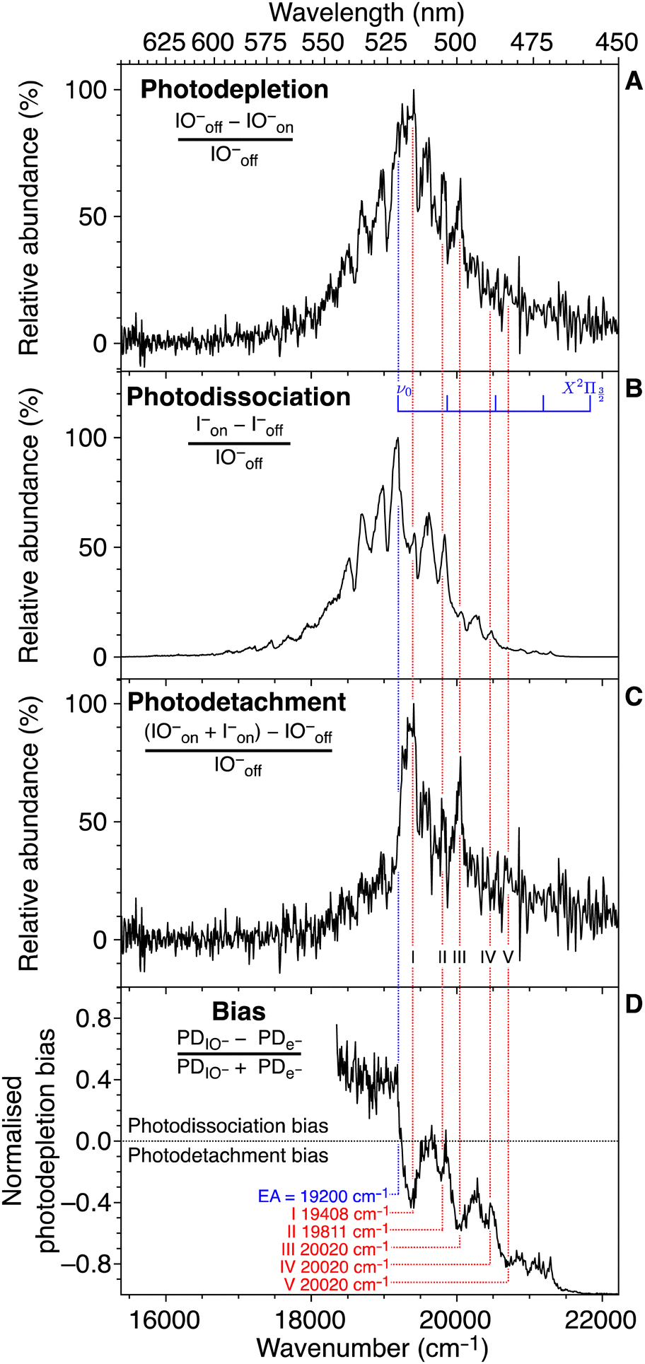 -Experimentally measured relative photodissociation cross sections of ...