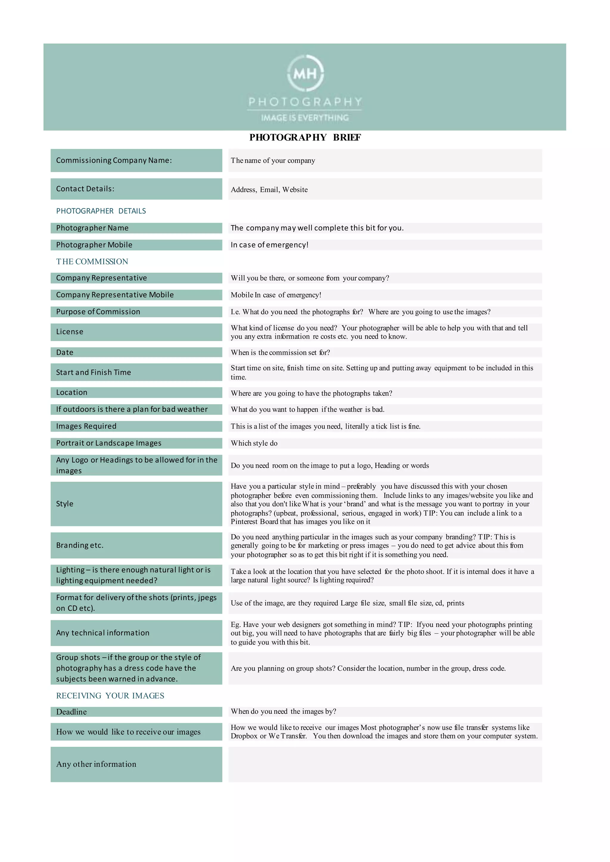 Photography brief guidance notes | DOCX
