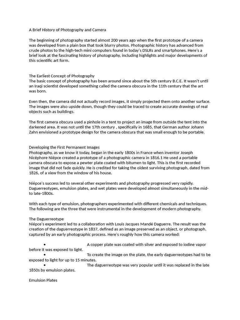 Early Development of Photography Notes 2022 updated b - MECS 102 ...