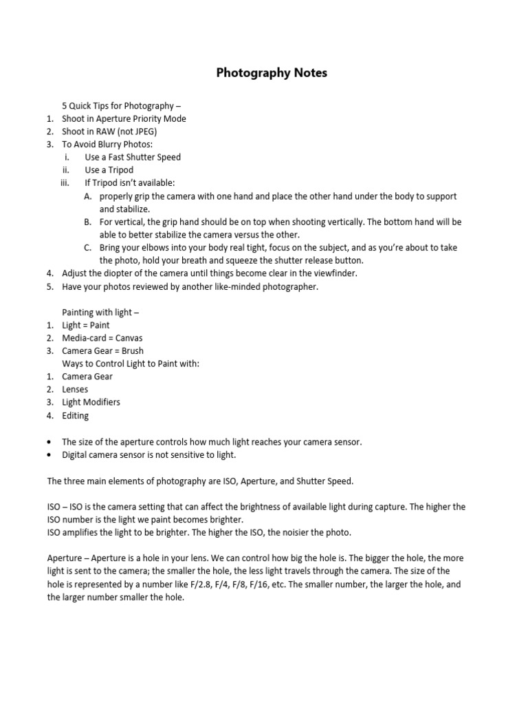 Photography Notes | PDF | Shutter Speed | Exposure (Photography)