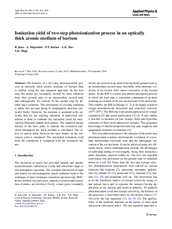 (PDF) Ionization yield of two-step photoionization process in an ...