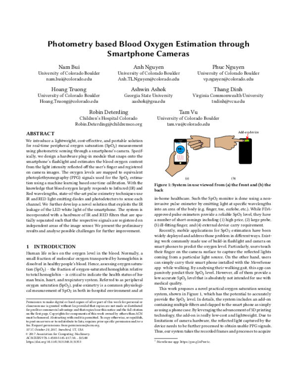 (PDF) Photometry based Blood Oxygen Estimation through Smartphone Cameras