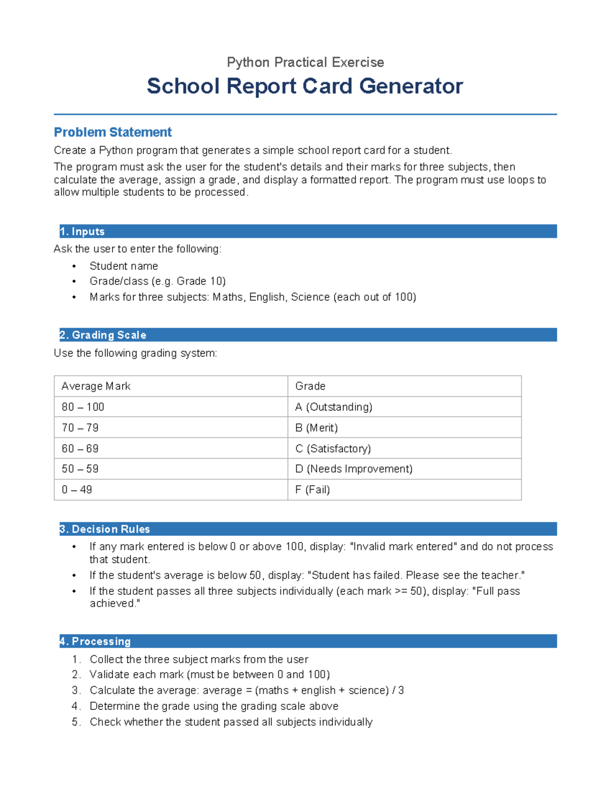 Python Practical Exercise: School Report Card Generator - Studocu