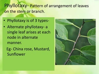 Phyllotaxy -arrangement of leaves ,Types - Alternate/Spiral , Opposite ...