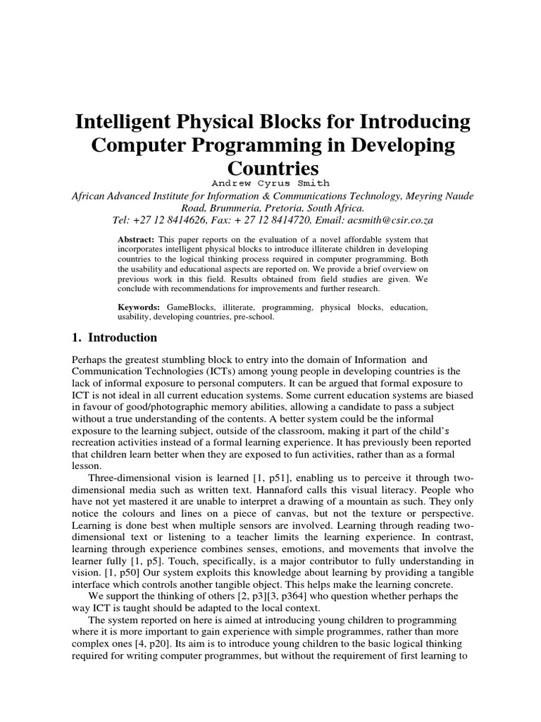 Intelligent Physical Blocks For Introducing Computer Programming in ...