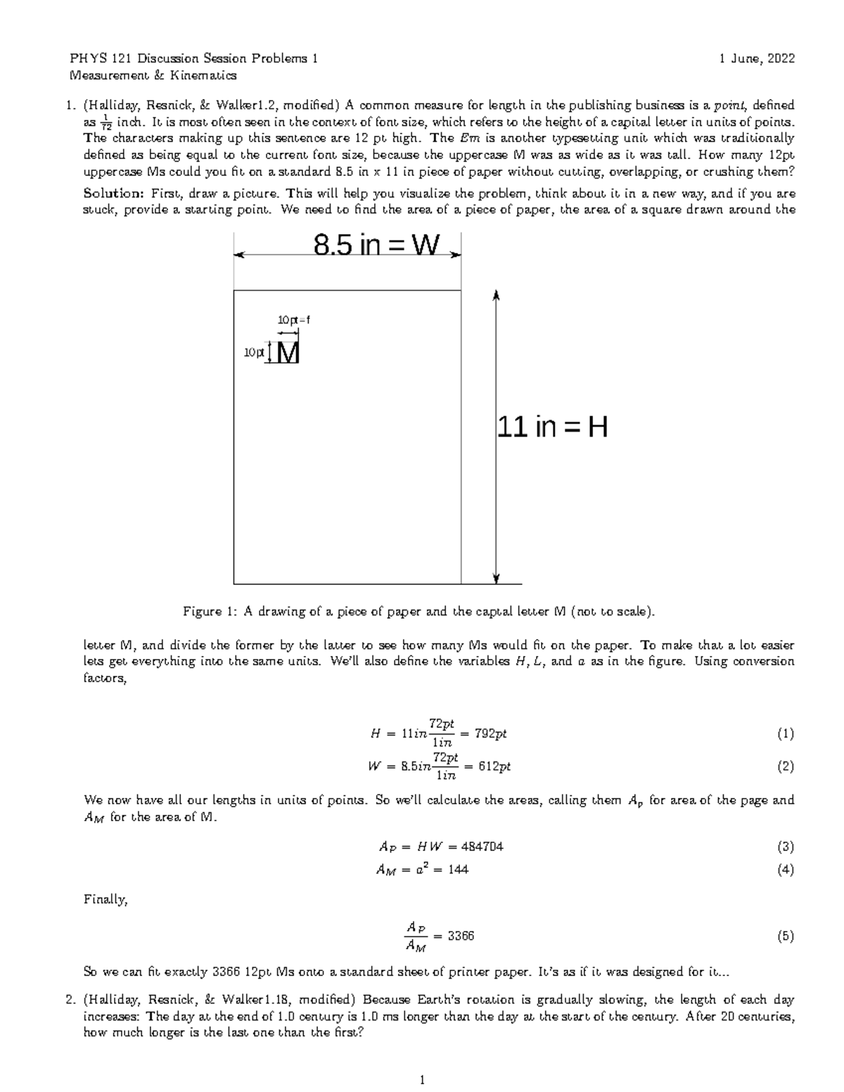 Measurement 1d Kinematics 1June2022 solved - PHYS 121 Discussion ...